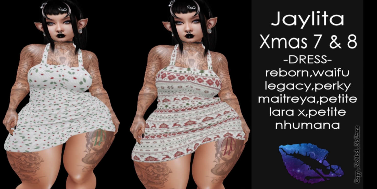 I heard this morning that Madame Noir has been putting gifts under the Christmas tree each day for the last three days, and so I ran over there as quick as my frozen feet could carry me. I wasn’t disappointed in what I found! This dress and heeled boots are both sparkly and diaphanous in all the best possible ways. Madame Noir sure knows her way around an animated sparkle. Anyway, join the group for freeand then pay the vendor 1L, which will then be returned to you with your gift. Can’t wait to see if anything else appears!