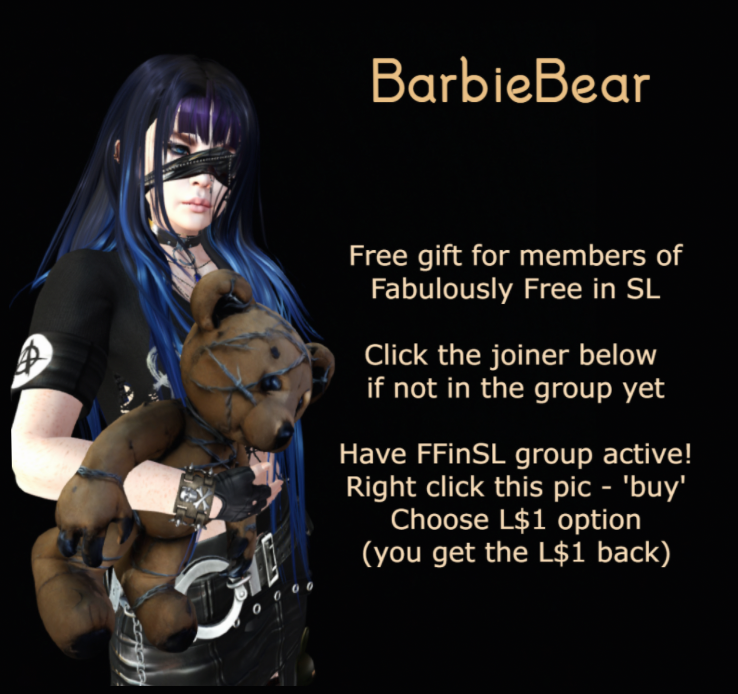 To pick up these group gifts, you will need to have your Fabulously Free in SL inworld group tag activated (It’s free to join!). To join the group, copy and paste the following link into local chat in your SL viewer and click the link in local chat – secondlife:///app/group/020fa7af-444d-f54f-01e2-557ec06315fd/about