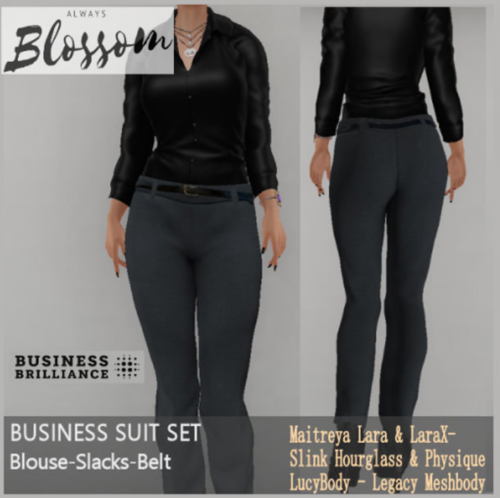 I’ll start with my outfit, which comes to us courtesy of Always Blossom. It’s their latest FabFree group gift. If you’re liking the schoolgirl vibes, I wouldn’t wait too long to go get it, the gifts at Always Blossom are changed up quite regularly. To get it, just activate your FabFree inworld group tag, click on the vendor and… poof! Yours. Oh and…yes, our group is always free to join.